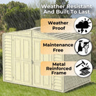 Reliable, Walk-In Storage With Lasting Weather Protection The Duramax DuraMate Shed 8x6 in Ivory offers a smart, maintenance-free storage solution built for year-round durability. With tall walk-in headroom, reinforced steel framing, and a skylight for natural lighting, this shed is ideal for storing tools, equipment, and outdoor gear.