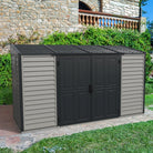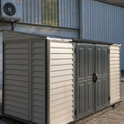 Slim, Reinforced Storage That Fits Flush Along Your Home The Duramax SideMate Plus Pro Shed 10x4 in Adobe & Dark Grey is built to deliver all-weather durability and strong vertical storage in a space-saving footprint. Designed to sit neatly against your home or fence, this shed offers easy access, reinforced strength, and long-term reliability — no painting or upkeep required.
