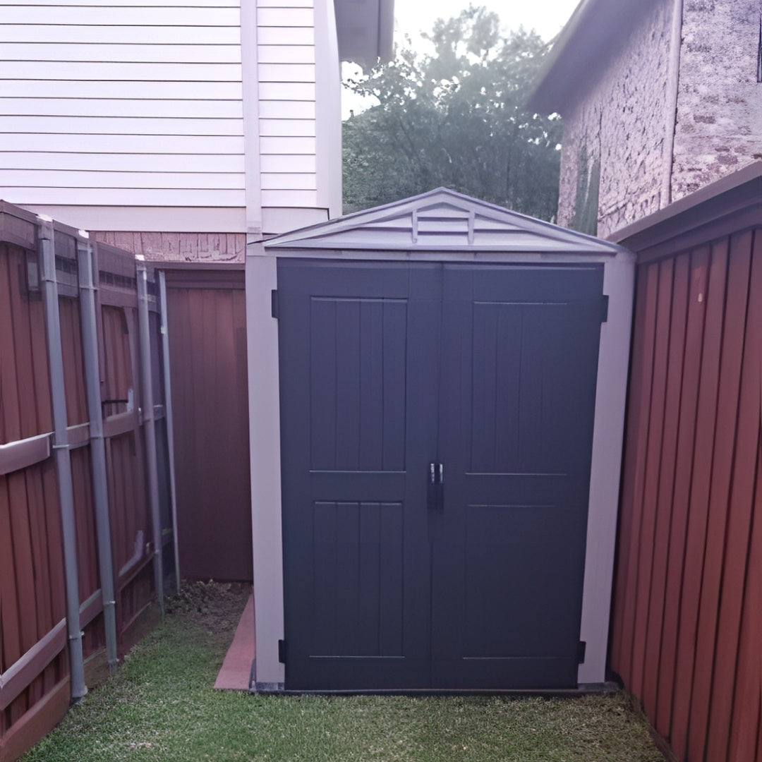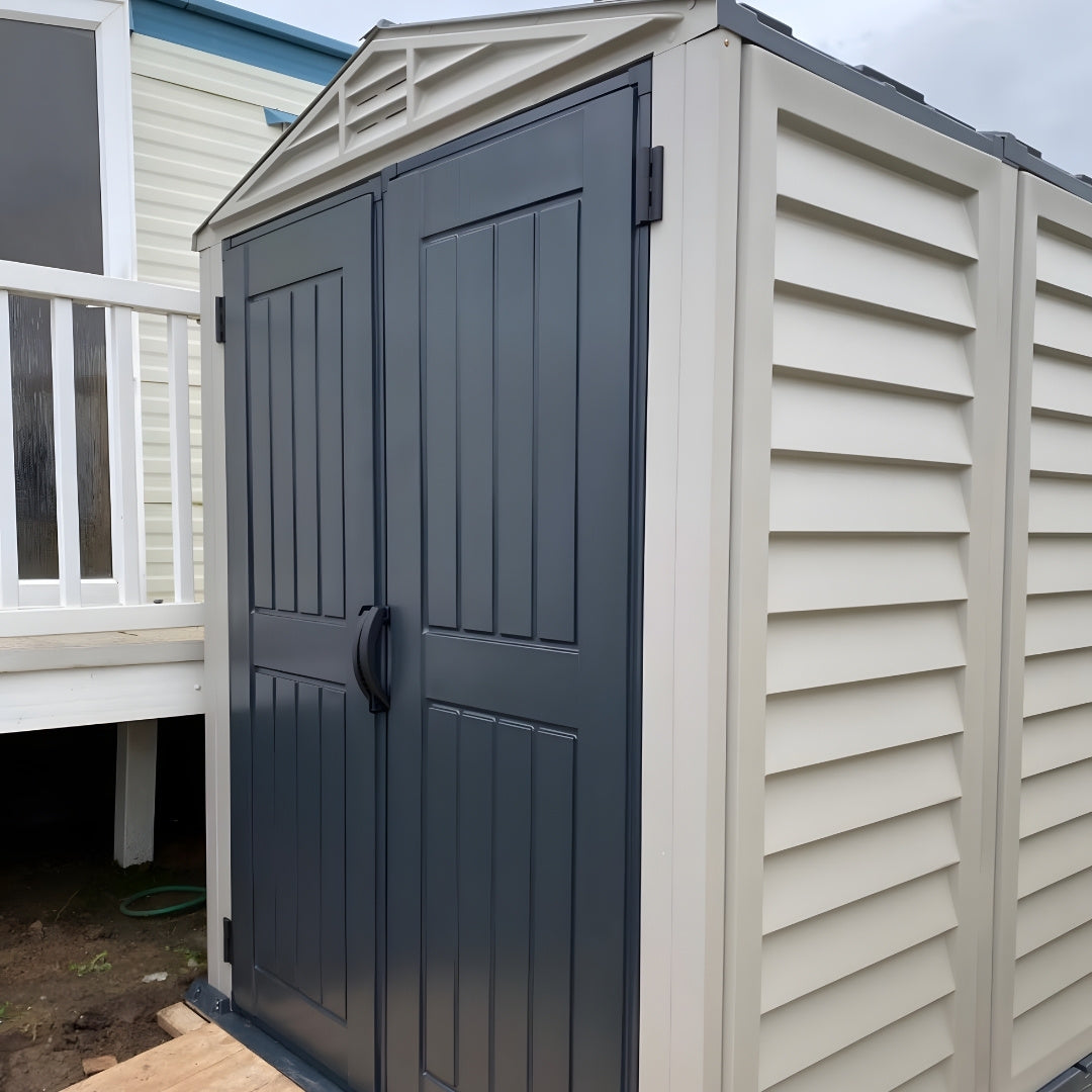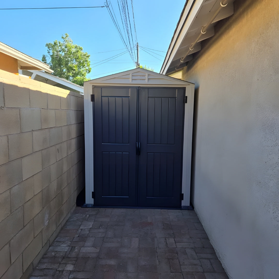 Our shed is designed to maximize outdoor space, fitting neatly along a home, fence, or as a standalone unit. Its compact yet spacious build keeps tools, bikes, and essentials organized.