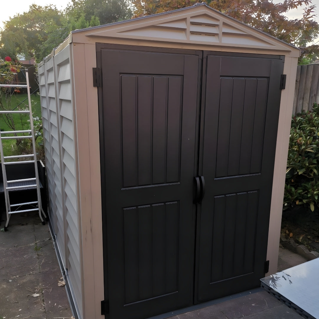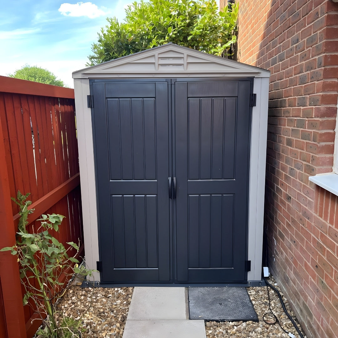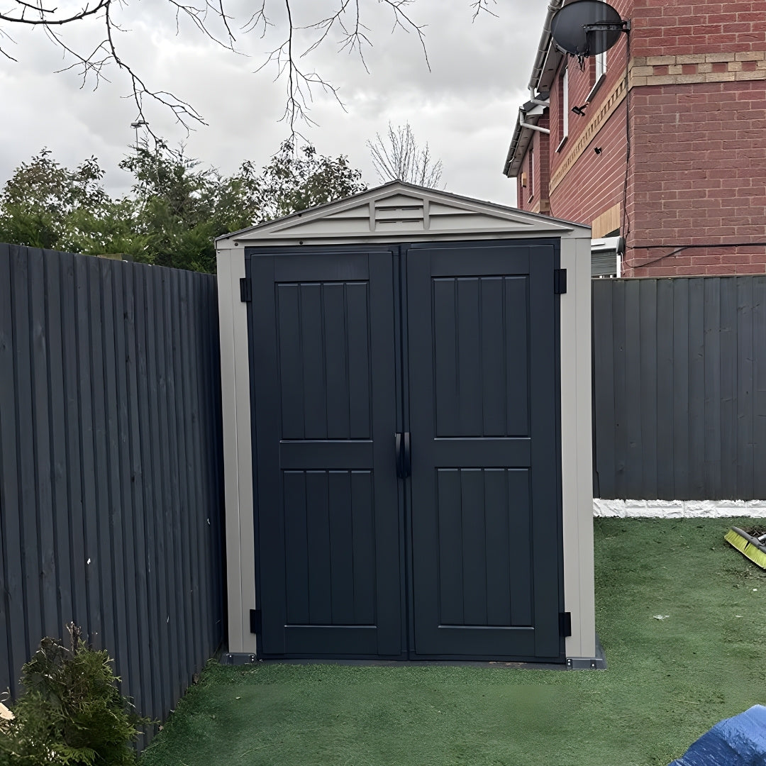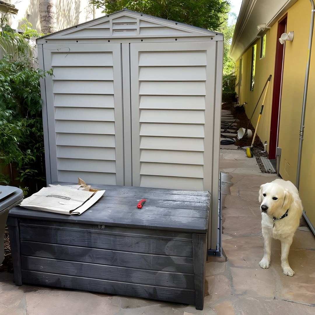 Our shed is designed to maximize outdoor space, fitting neatly along a home, fence, or as a standalone unit. Its compact yet spacious build keeps tools, bikes, and essentials organized.