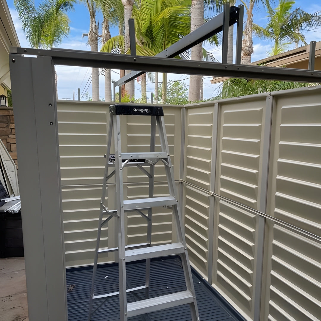 Made from weather-resistant vinyl, our sheds withstand rain, snow, wind, and intense sun. Unlike wood, they need no painting or upkeep, offering a low-maintenance solution. Plus, they’re fire-retardant.